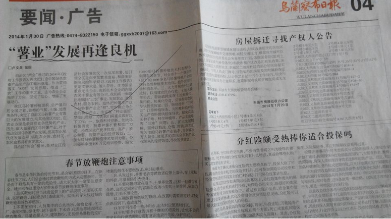 烏蘭察布日報 要聞·廣告