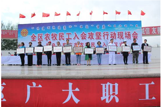 6月14日,全區(qū)農(nóng)牧民工入會攻堅行動現(xiàn)場會暨烏蘭察布市農(nóng)牧民工入會儀式在我市舉行。我公司組織30人的方隊參加了入會儀式。期間,自治區(qū)人大常委會副主任、總工會主席杭桂林,自治區(qū)總工會黨組書記、副主席崔明龍,自治區(qū)總工會副主席王麗紅,我市領導張琛、李建平、楊國文、王增強、王國相、于生龍,和各盟市工會分管主席、主管部門部長,各盟市黨委政府所在地的區(qū)(市、旗)總工會主席,各自治區(qū)產(chǎn)業(yè)工會負責人,自治區(qū)直屬機關工會工委負責人,區(qū)總相關部門負責人,市各旗縣市區(qū)工會負責人及部分市直基層工會負責人100余人來我公司進行了實地觀摩考察。