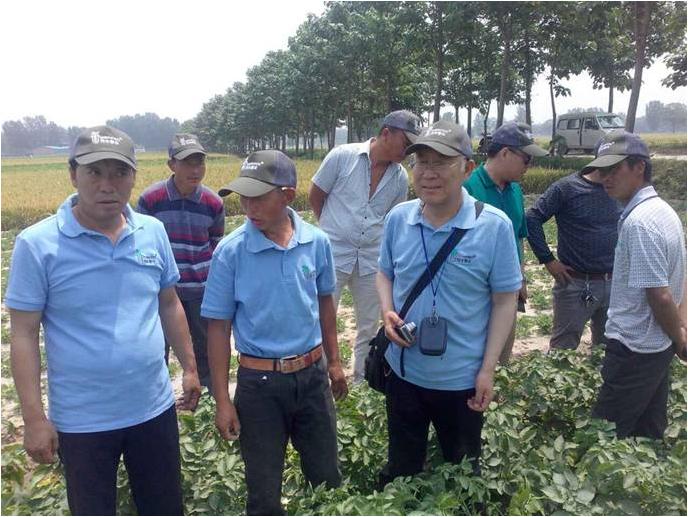會場上,當(dāng)?shù)剞r(nóng)牧業(yè)局副局長、糧食局局長就此次觀摩會的開展做了重要講話。民豐種業(yè)副總經(jīng)理張文昌介紹了公司基本情況、2105年馬鈴薯行業(yè)發(fā)展?fàn)顩r及優(yōu)質(zhì)馬鈴薯種薯選擇等內(nèi)容;民豐種業(yè)質(zhì)量技術(shù)中心孟正平老師就馬鈴薯種植技術(shù)要點及病蟲害防治做了深入詳細(xì)的講解。隨后,于田間觀摩現(xiàn)場,孟老師與當(dāng)?shù)胤N植戶進(jìn)行了現(xiàn)場互動及答疑,在此同時,我公司與當(dāng)?shù)胤止苻r(nóng)業(yè)領(lǐng)導(dǎo)就當(dāng)?shù)匚磥眈R鈴薯的發(fā)展與合作達(dá)成初步意向。